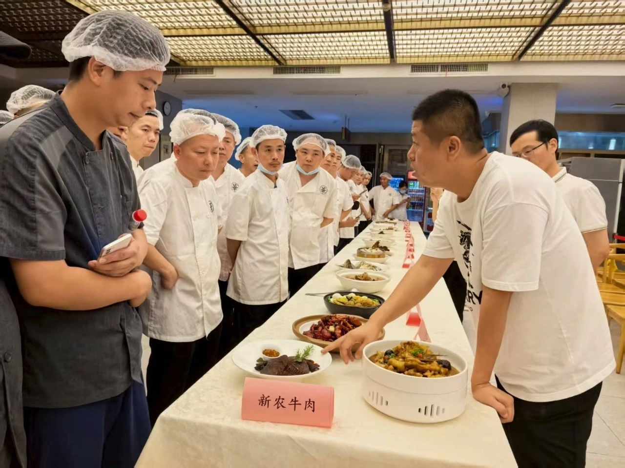 曾大师结合演示菜品为参训厨师们展开了详细讲解。对楚菜以 “味” 为核心、注重本味、善用多种烹饪技法的特点进行了剖析,并对每道演示菜品的烹制方法和技巧进行一一讲解,帮助参训厨师们快速理解、掌握要点。