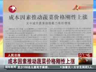 近日,国家发改委发布一项调研报告表明:成本因素推动蔬菜价格刚性上涨,天气和周期性因素易造成蔬菜价格短期波动。