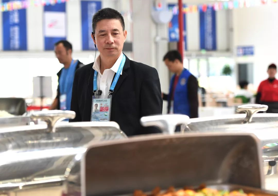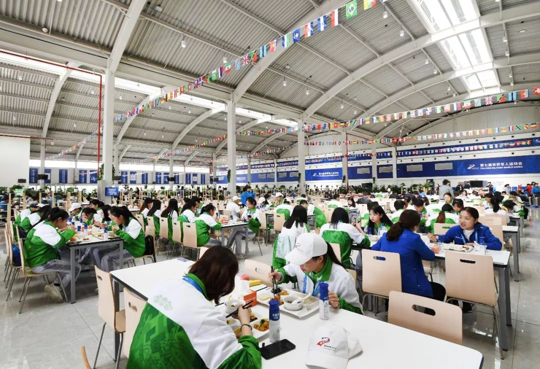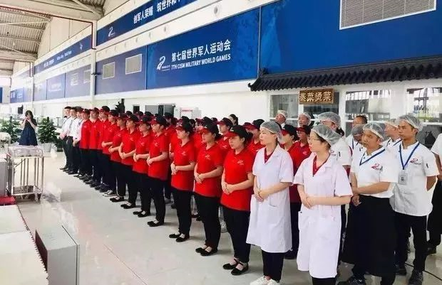 军运会项目正式运营以来,集团上下积极配合工作。集团每日有专门的设备检查维护人员在现场巡检,采供部及时供给新鲜食材,技术部每日把控菜品质量,质检部严控食品安全,行政办保障车辆运送,举集团之力为军运会项目提供一流的餐饮服务。