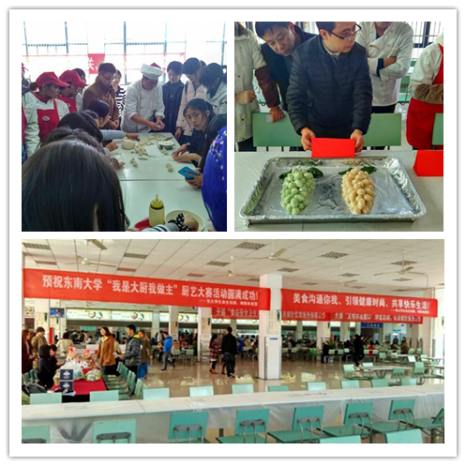 2015年12月12日中午,东南大学梅园食堂彩旗飘飘,热闹非凡。在集团南京区域梅园食堂管理团队的筹划组织下,学校第八届“我是大厨我做主”厨艺比赛暨美食文化节活动拉开序幕,三百余名大学生组建了四十二支实战队参赛,食堂高级技师、一级厨师轮番上阵大展厨艺,并与师生开展美食DIY互动教学,加强知识交流,共享美食盛宴。